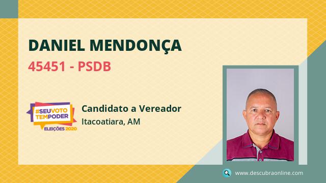 Candidato do PSDB para Vereador, Daniel Mendonça obteve 516 votos e foi eleito Vereador em Itacoatiara nas Eleições 2020.