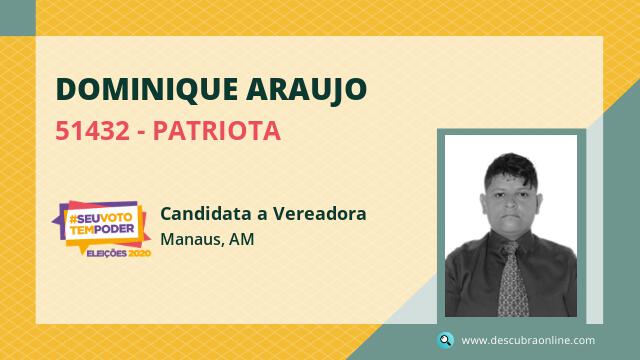 Candidata do PATRIOTA para Vereador, Dominique Araujo obteve 0 votos e está como Suplente Vereador em Manaus nas Eleições 2020.