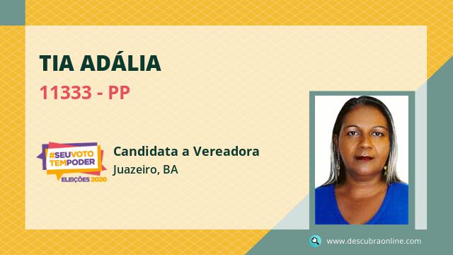 Candidata do PP para Vereador, Tia Adália obteve 147 votos e está como Suplente Vereador em Juazeiro nas Eleições 2020.