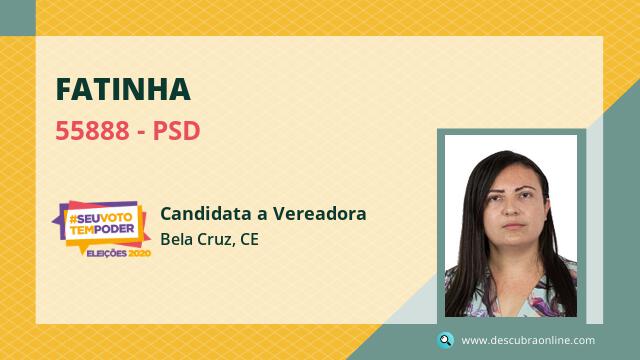 Candidata do PSD para Vereador, Fatinha obteve 16 votos e está como Suplente Vereador em Bela Cruz nas Eleições 2020.