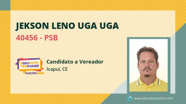 Candidato do PSB para Vereador, Jekson Leno Uga Uga obteve 65 votos e está como Suplente Vereador em Icapuí nas Eleições 2020.