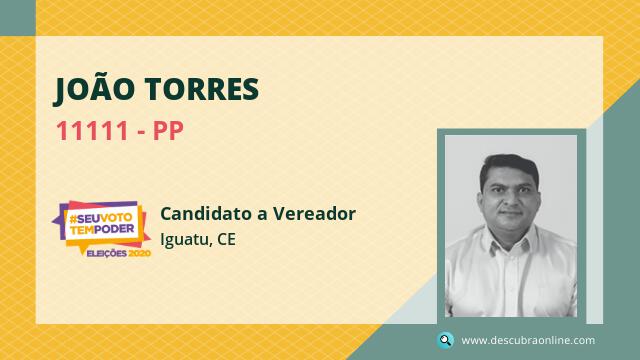 Candidato do PP para Vereador, João Torres obteve 885 votos e foi eleito Vereador em Iguatu nas Eleições 2020.