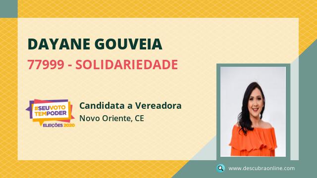 Candidata do SOLIDARIEDADE para Vereador, Dayane Gouveia obteve 971 votos e foi eleito Vereador em Novo Oriente nas Eleições 2020.