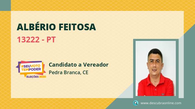 Candidato do PT para Vereador, Albério Feitosa obteve 351 votos e está como Suplente Vereador em Pedra Branca nas Eleições 2020.