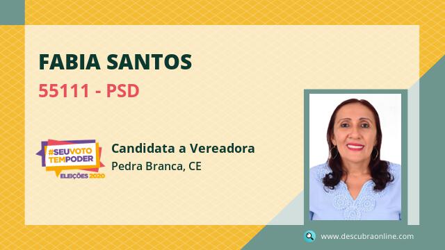 Candidata do PSD para Vereador, Fabia Santos obteve 2 votos e está como Suplente Vereador em Pedra Branca nas Eleições 2020.