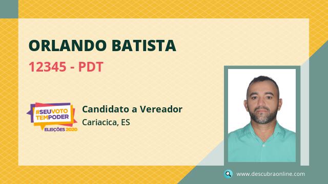Candidato do PDT para Vereador, Orlando Batista obteve 180 votos e está como Suplente Vereador em Cariacica nas Eleições 2020.