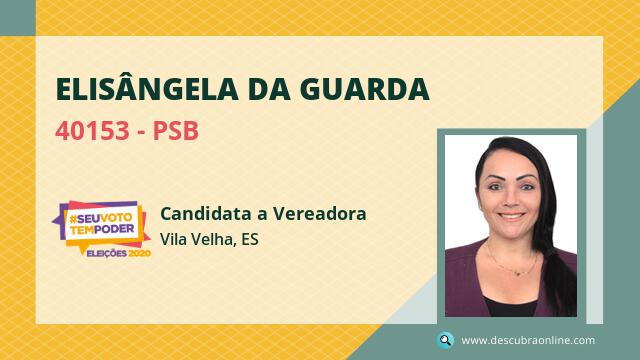 Candidata do PSB para Vereador, Elisângela da Guarda obteve 926 votos e está como Suplente Vereador em Vila Velha nas Eleições 2020.