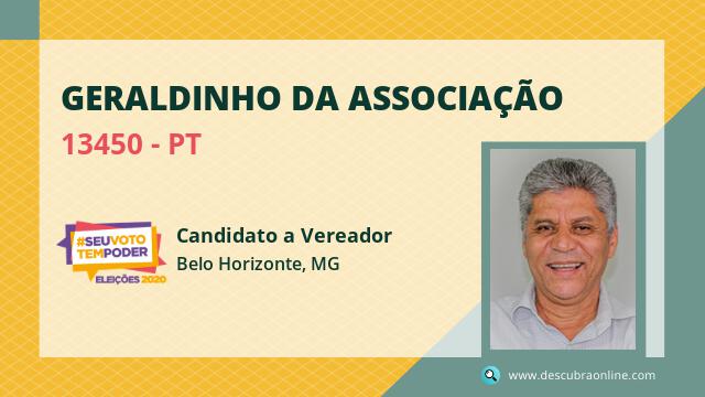 Candidato do PT para Vereador, Geraldinho da Associação obteve 501 votos e está como Suplente Vereador em Belo Horizonte nas Eleições 2020.