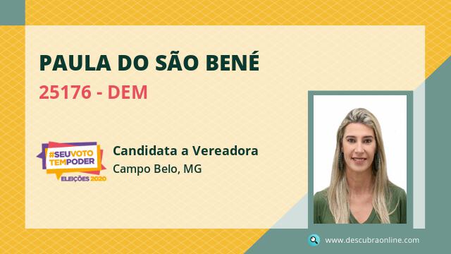 Candidata do DEM para Vereador, Paula do São Bené obteve 70 votos mas não foi eleito Vereador em Campo Belo nas Eleições 2020.