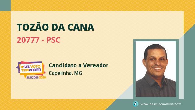 Candidato do PSC para Vereador, Tozão da Cana obteve 564 votos e foi eleito Vereador em Capelinha nas Eleições 2020.