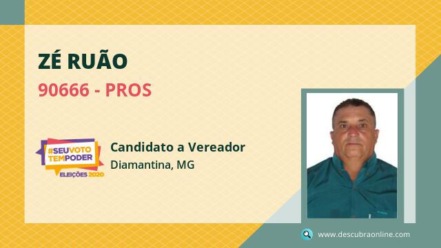 Candidato do PROS para Vereador, Zé Ruão obteve 208 votos e está como Suplente Vereador em Diamantina nas Eleições 2020.