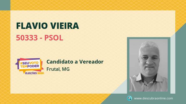Candidato do PSOL para Vereador, Flavio Vieira obteve 220 votos e está como Suplente Vereador em Frutal nas Eleições 2020.