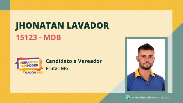 Candidato do MDB para Vereador, Jhonatan Lavador obteve 345 votos e foi eleito Vereador em Frutal nas Eleições 2020.