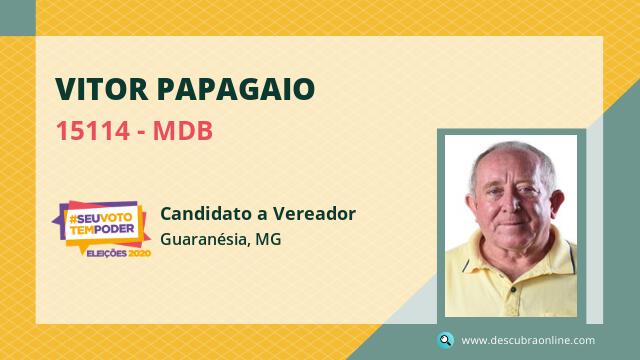 Candidato do MDB para Vereador, Vitor Papagaio obteve 170 votos e está como Suplente Vereador em Guaranésia nas Eleições 2020.