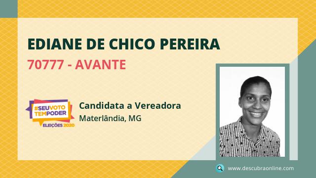 Candidata do AVANTE para Vereador, Ediane de Chico Pereira obteve 7 votos e está como Suplente Vereador em Materlândia nas Eleições 2020.