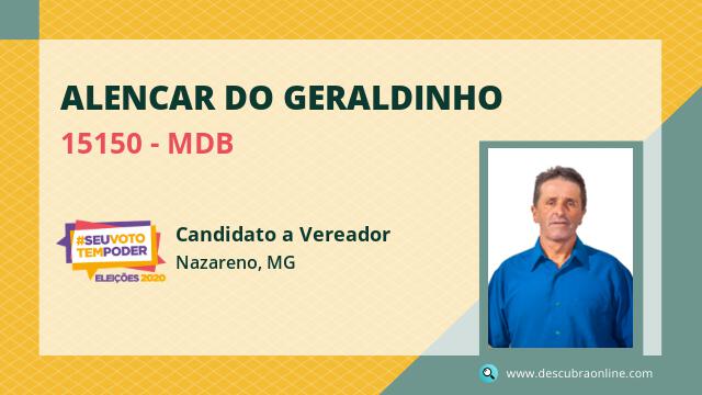 Candidato do MDB para Vereador, Alencar do Geraldinho obteve 91 votos e está como Suplente Vereador em Nazareno nas Eleições 2020.