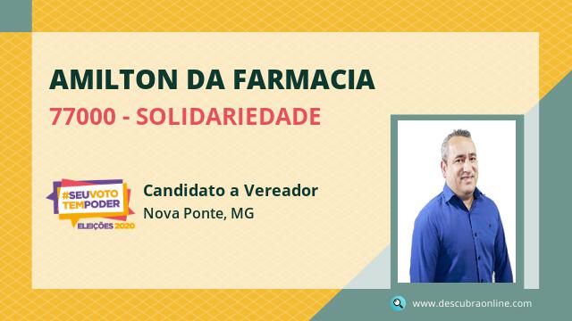 Candidato do SOLIDARIEDADE para Vereador, Amilton da Farmacia obteve 165 votos e está como Suplente Vereador em Nova Ponte nas Eleições 2020.