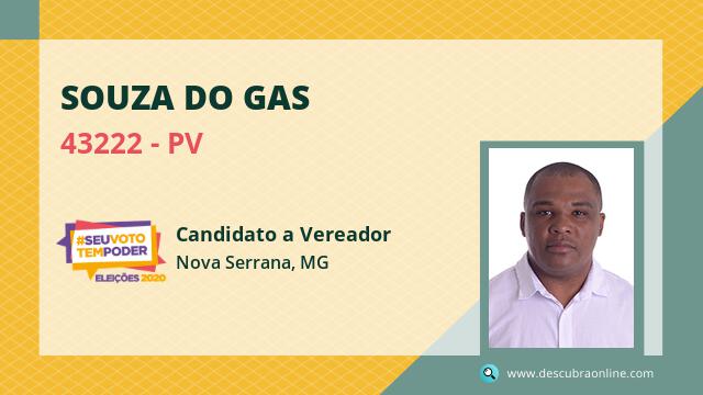 Candidato do PV para Vereador, Souza do Gas obteve 173 votos e está como Suplente Vereador em Nova Serrana nas Eleições 2020.