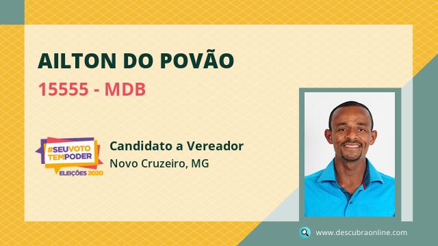 Candidato do MDB para Vereador, Ailton do Povão obteve 67 votos e está como Suplente Vereador em Novo Cruzeiro nas Eleições 2020.