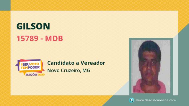 Candidato do MDB para Vereador, Gilson obteve 552 votos e foi eleito Vereador em Novo Cruzeiro nas Eleições 2020.