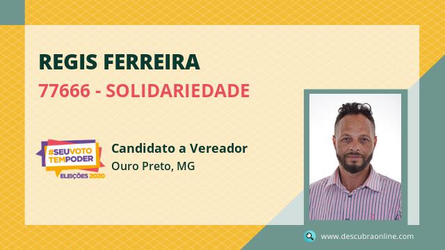 Candidato do SOLIDARIEDADE para Vereador, Regis Ferreira obteve 11 votos e está como Suplente Vereador em Ouro Preto nas Eleições 2020.