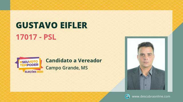 Candidato do PSL para Vereador, Gustavo Eifler obteve 288 votos e está como Suplente Vereador em Campo Grande nas Eleições 2020.