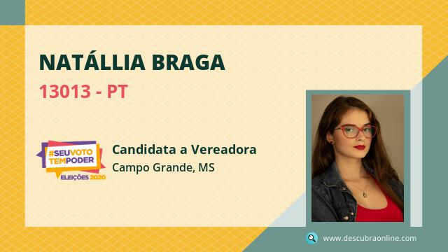 Candidata do PT para Vereador, Natállia Braga obteve 282 votos e está como Suplente Vereador em Campo Grande nas Eleições 2020.