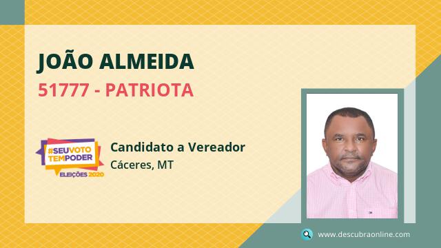 Candidato do PATRIOTA para Vereador, João Almeida obteve 111 votos mas não foi eleito Vereador em Cáceres nas Eleições 2020.