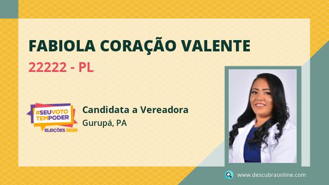 Candidata do PL para Vereador, Fabiola Coração Valente obteve 777 votos e foi eleito Vereador em Gurupá nas Eleições 2020.
