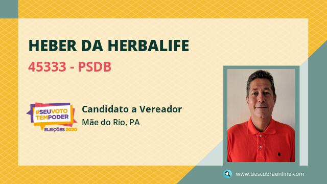 Candidato do PSDB para Vereador, Heber da Herbalife obteve 286 votos e está como Suplente Vereador em Mãe do Rio nas Eleições 2020.