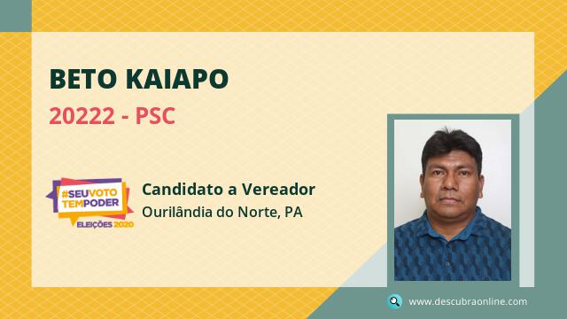 Candidato do PSC para Vereador, Beto Kaiapo obteve 400 votos e está como Vereador em Ourilândia do Norte nas Eleições 2020.
