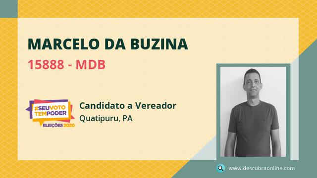 Candidato do MDB para Vereador, Marcelo da Buzina obteve 231 votos e está como Suplente Vereador em Quatipuru nas Eleições 2020.