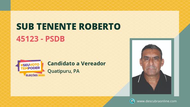 Candidato do PSDB para Vereador, Sub Tenente Roberto obteve 116 votos mas não foi eleito Vereador em Quatipuru nas Eleições 2020.