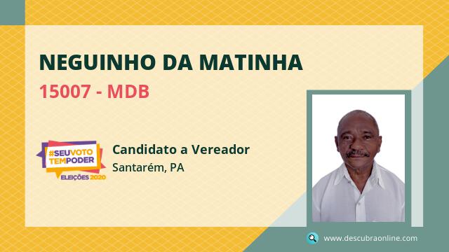Candidato do MDB para Vereador, Neguinho da Matinha obteve 788 votos e está como Suplente Vereador em Santarém nas Eleições 2020.