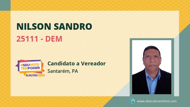 Candidato do DEM para Vereador, Nilson Sandro obteve 144 votos e está como Suplente Vereador em Santarém nas Eleições 2020.