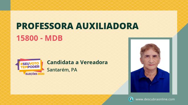 Candidata do MDB para Vereador, Professora Auxiliadora obteve 271 votos e está como Suplente Vereador em Santarém nas Eleições 2020.