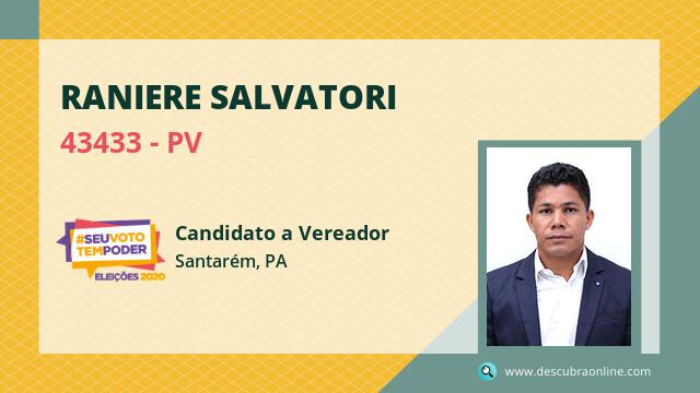 Candidato do PV para Vereador, Raniere Salvatori obteve 41 votos e está como Suplente Vereador em Santarém nas Eleições 2020.