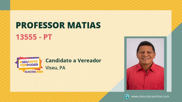 Candidato do PT para Vereador, Professor Matias obteve 328 votos e está como Vereador em Viseu nas Eleições 2020.