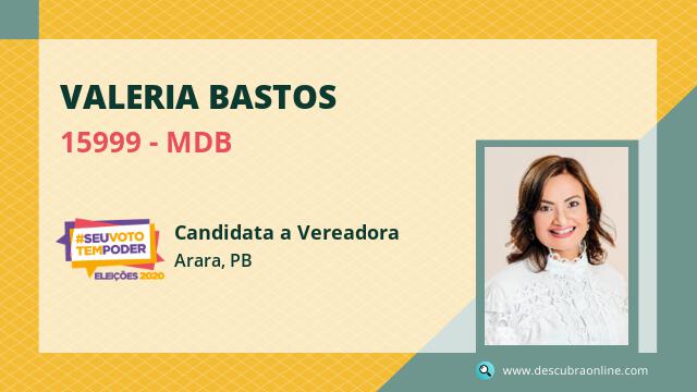 Candidata do MDB para Vereador, Valeria Bastos obteve 283 votos e está como Suplente Vereador em Arara nas Eleições 2020.