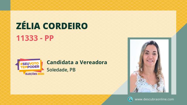 Candidata do PP para Vereador, Zélia Cordeiro obteve 170 votos e está como Vereador em Soledade nas Eleições 2020.