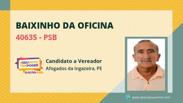 Candidato do PSB para Vereador, Baixinho da Oficina obteve 32 votos e está como Suplente Vereador em Afogados da Ingazeira nas Eleições 2020.