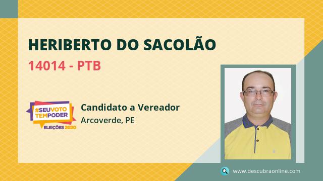 Candidato do PTB para Vereador, Heriberto do Sacolão obteve 1381 votos e está como Suplente Vereador em Arcoverde nas Eleições 2020.