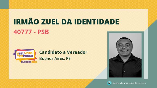 Candidato do PSB para Vereador, Irmão Zuel da Identidade obteve 260 votos e está como Suplente Vereador em Buenos Aires nas Eleições 2020.