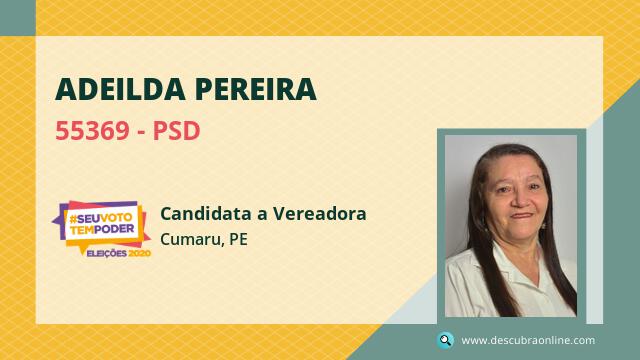 Candidata do PSD para Vereador, Adeilda Pereira obteve 5 votos e está como Suplente Vereador em Cumaru nas Eleições 2020.