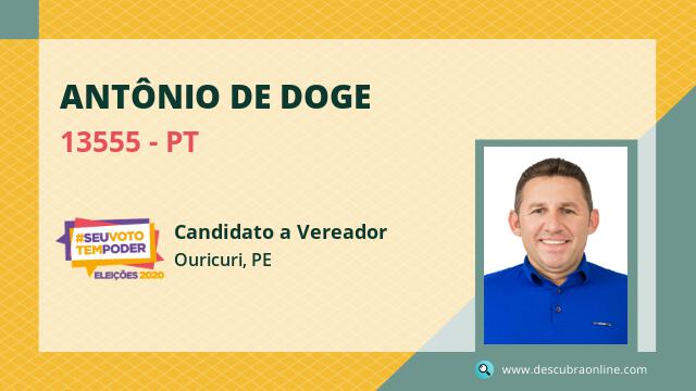 Candidato do PT para Vereador, Antônio de Doge obteve 365 votos e está como Suplente Vereador em Ouricuri nas Eleições 2020.