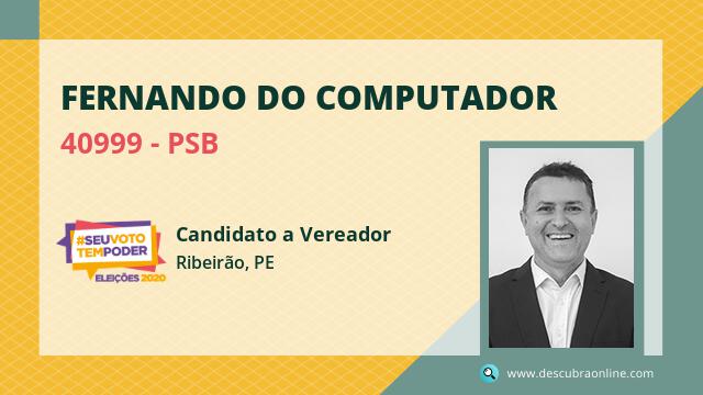 Candidato do PSB para Vereador, Fernando do Computador obteve 107 votos e está como Suplente Vereador em Ribeirão nas Eleições 2020.
