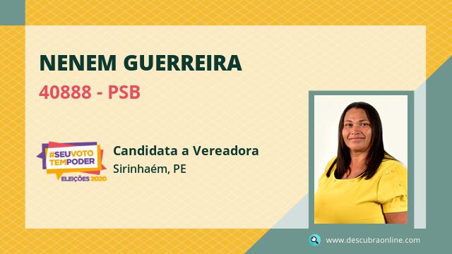 Candidata do PSB para Vereador, Nenem Guerreira obteve 18 votos e está como Suplente Vereador em Sirinhaém nas Eleições 2020.