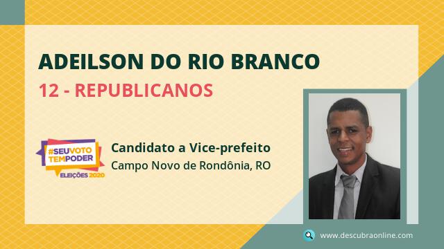 Adeilson do Rio Branco (REPUBLICANOS) candidato a Vice-Prefeito de Campo Novo de Rondônia, RO