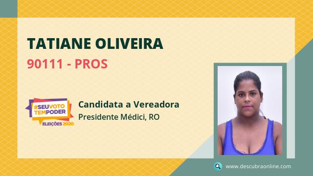 Candidata do PROS para Vereador, Tatiane Oliveira obteve 7 votos mas não foi eleito Vereador em Presidente Médici nas Eleições 2020.