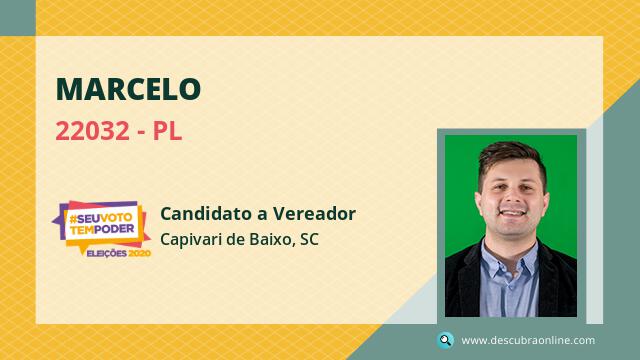 Candidato do PL para Vereador, Marcelo obteve 181 votos e está como Suplente Vereador em Capivari de Baixo nas Eleições 2020.